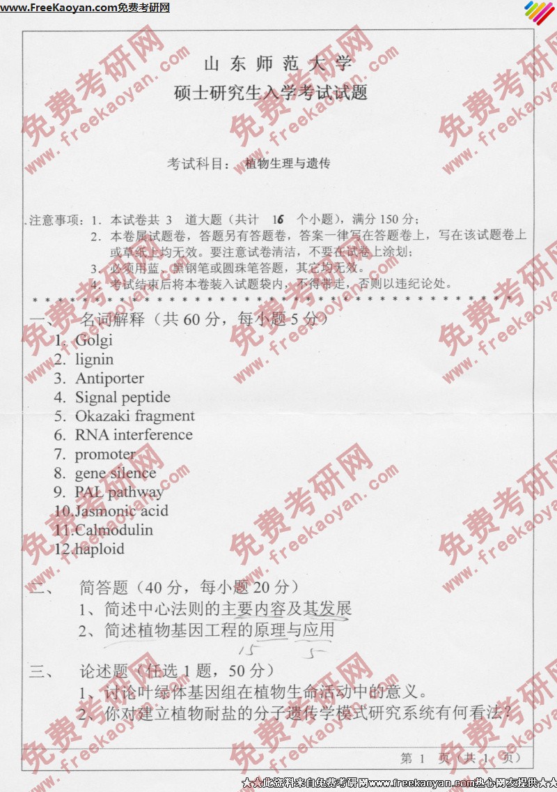 相关话题/考研真题 山东师范大学 植物 遗传 生理