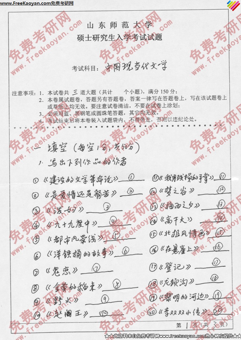 相关话题/山东师范大学 考研真题 中国现当代文学