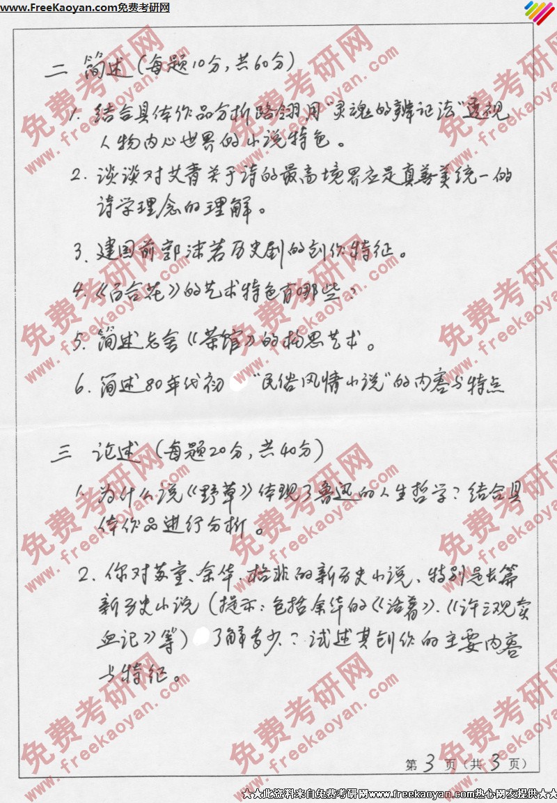 相关话题/山东师范大学 考研真题 中国现当代文学