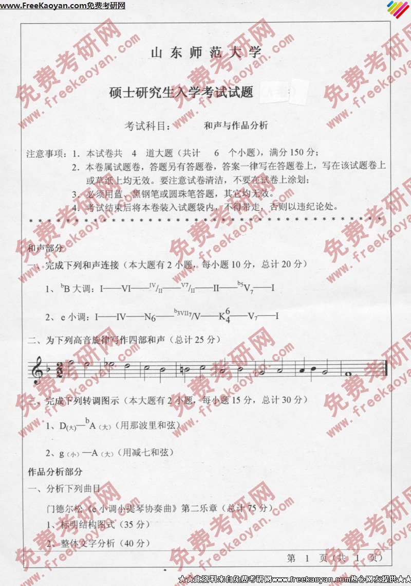 专业课考研经验 本站小编 FreeKaoyan 2018-01-23山东师范大学2006年考研真题-中外音乐史