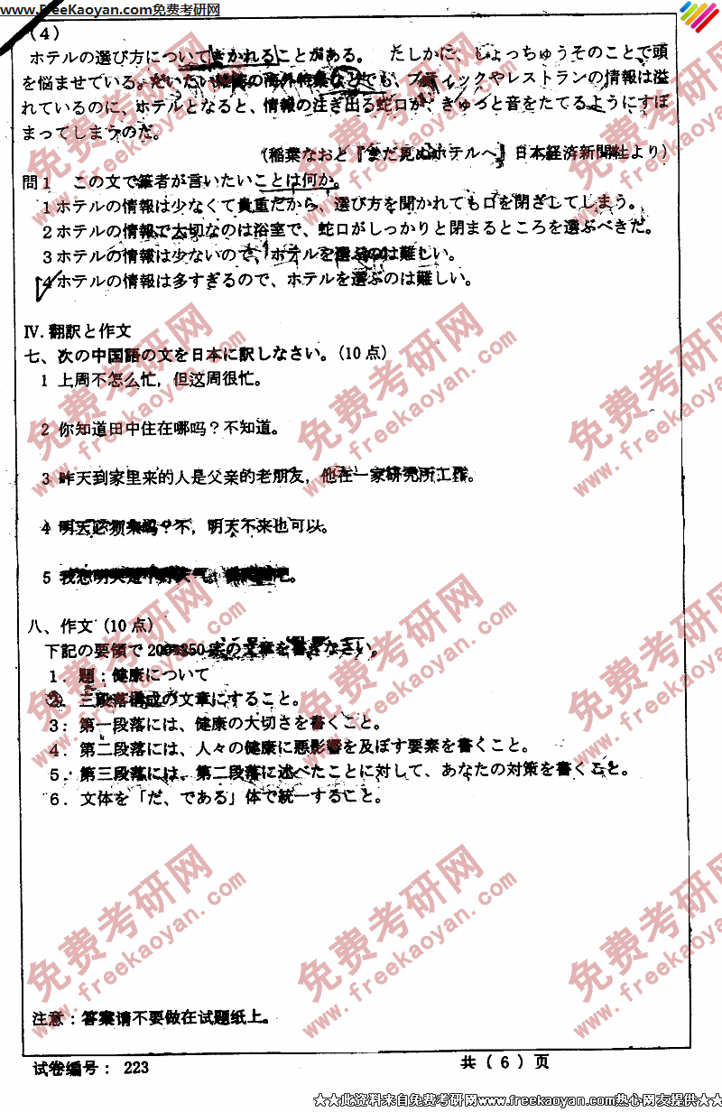 苏州大学2004年考研真题-二外日语(6)