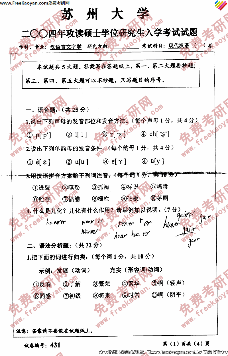 相关话题/苏州大学 考研真题 现代汉语