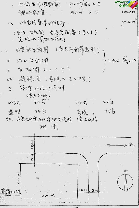 专业课考研经验 本站小编 FreeKaoyan 2018-01-23根据城市总体规划,江南某城市拟在附图所示区域新建一以多层为主的普通居住区。基地位于城市发展方向上的市郊结合部,市区中心位于基地东向,基地西侧(跨河)和南侧分别为规划的工业开发区和规划居住用地,基地东南侧为规划城市公园。基地四界分别为二条红线宽度40米的城市干道、一条红线宽度24米的城市支路和一条蓝线 ...