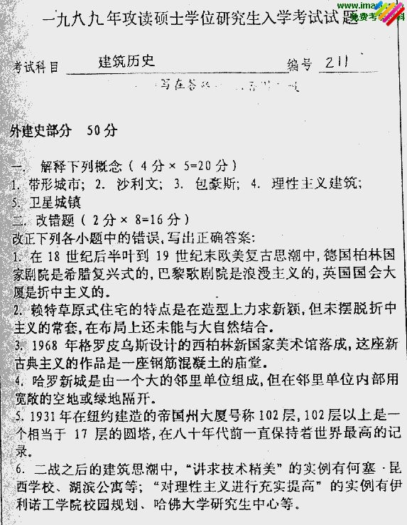 专业课考研经验 本站小编 FreeKaoyan 2018-01-23浙江大学1996年考研真题-建筑历史(含中外建设史)