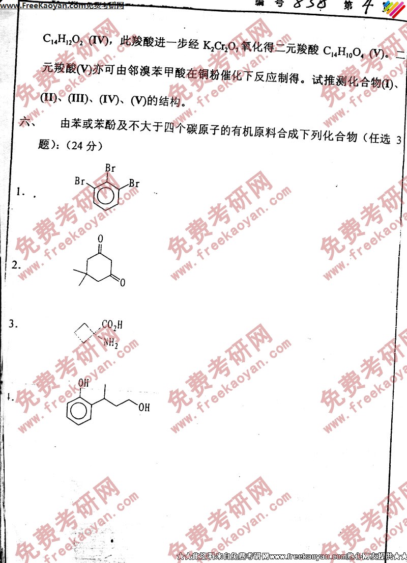 浙江大学2000年考研真题-微生物与生化药学有机化学(甲)(4)