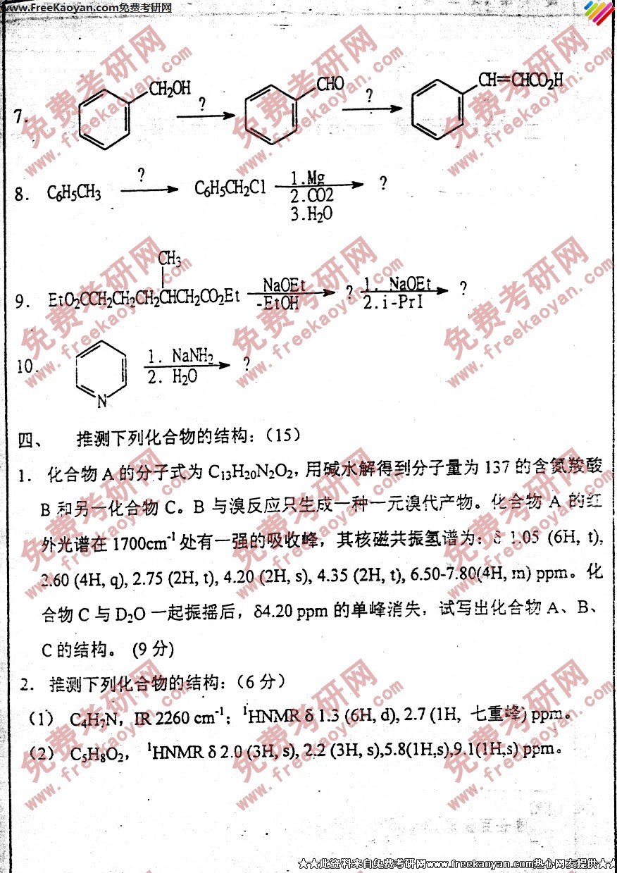 专业课考研经验 本站小编 FreeKaoyan 2018-01-23浙江大学2000年考研真题-微生物与生化药学有机化学(甲)
