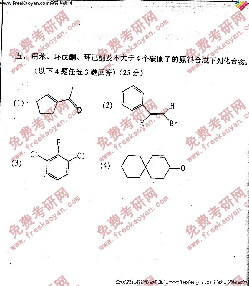专业课考研经验 本站小编 FreeKaoyan 2018-01-23浙江大学2000年考研真题-微生物与生化药学有机化学(甲)