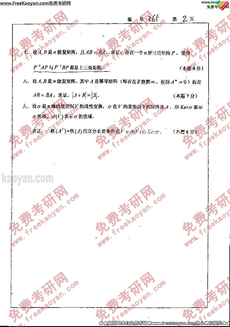 专业课考研经验 本站小编 FreeKaoyan 2018-01-23浙江大学2000年考研真题-高等代数
