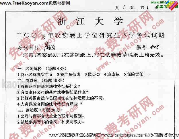 专业课考研经验 本站小编 FreeKaoyan 2018-01-23浙江大学2002年考研真题-经济法