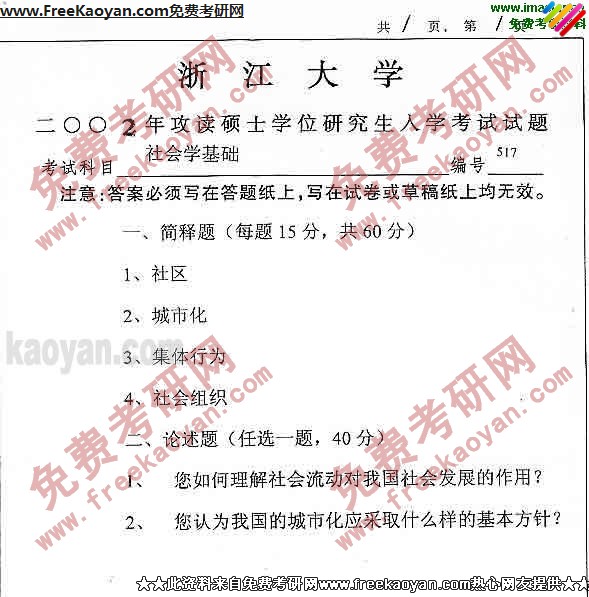 专业课考研经验 本站小编 FreeKaoyan 2018-01-23浙江大学2002年考研真题-环境规划