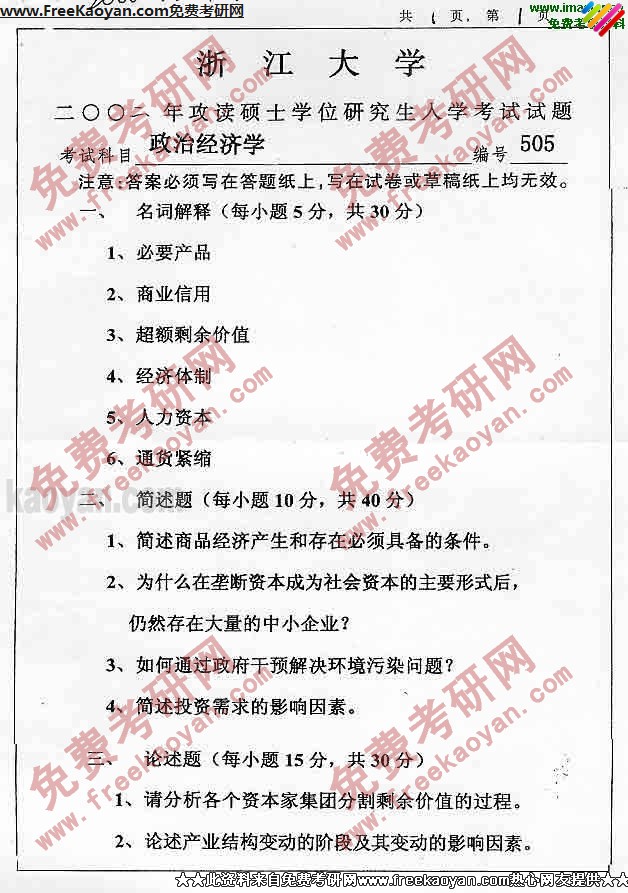 专业课考研经验 本站小编 FreeKaoyan 2018-01-23浙江大学2002年考研真题-金融学联考