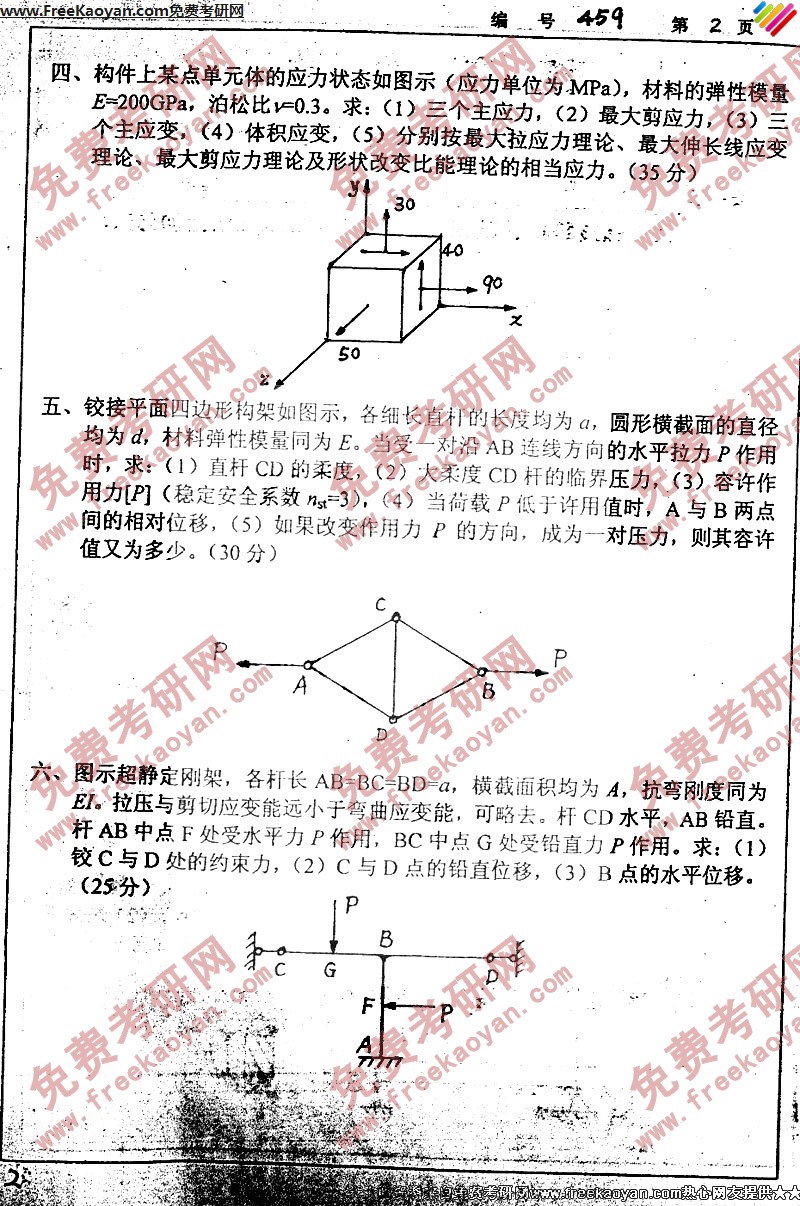 浙江大学2003年考研真题-材料力学(乙)(2)