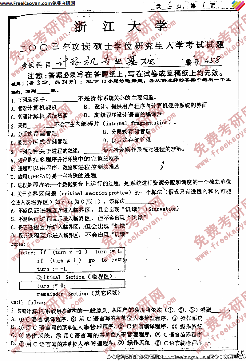 相关话题/考研真题 浙江大学 专业基础 计算机