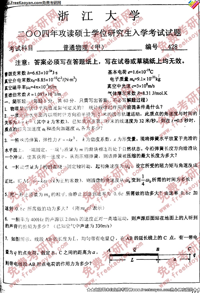 专业课考研经验 本站小编 FreeKaoyan 2018-01-23浙江大学2004年考研真题-传热学