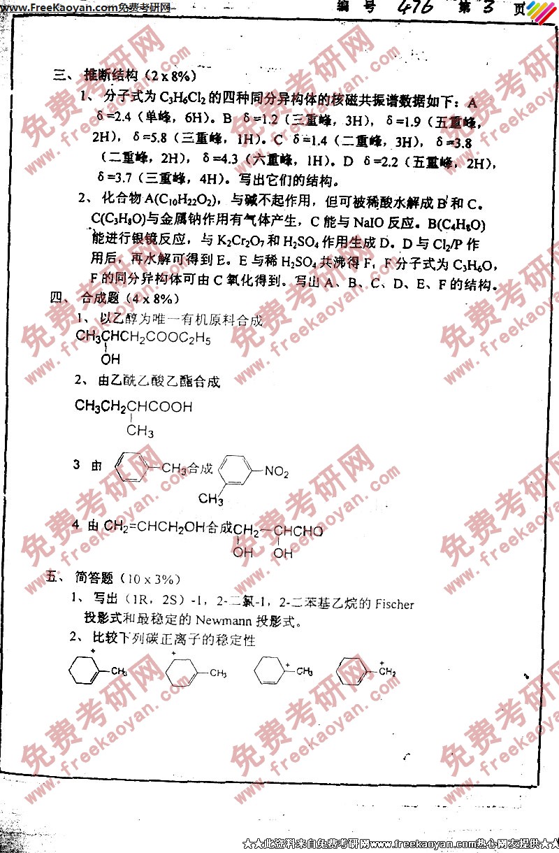 相关话题/浙江大学 考研真题 有机化学
