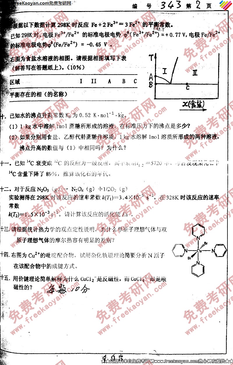 相关话题/浙江大学 考研真题 物理化学