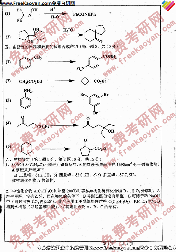 相关话题/浙江工业大学 考研真题 有机化学