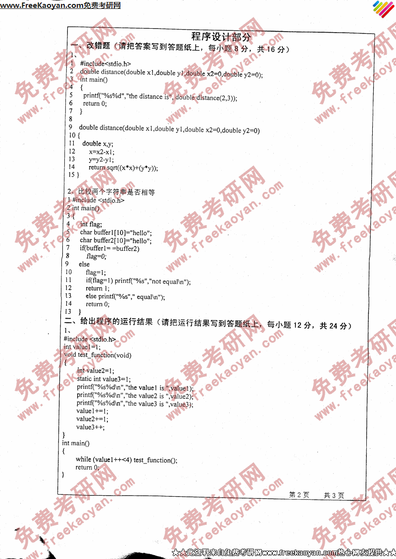 专业课考研经验 本站小编 FreeKaoyan 2018-01-23浙江工业大学2006年考研真题-程序设计