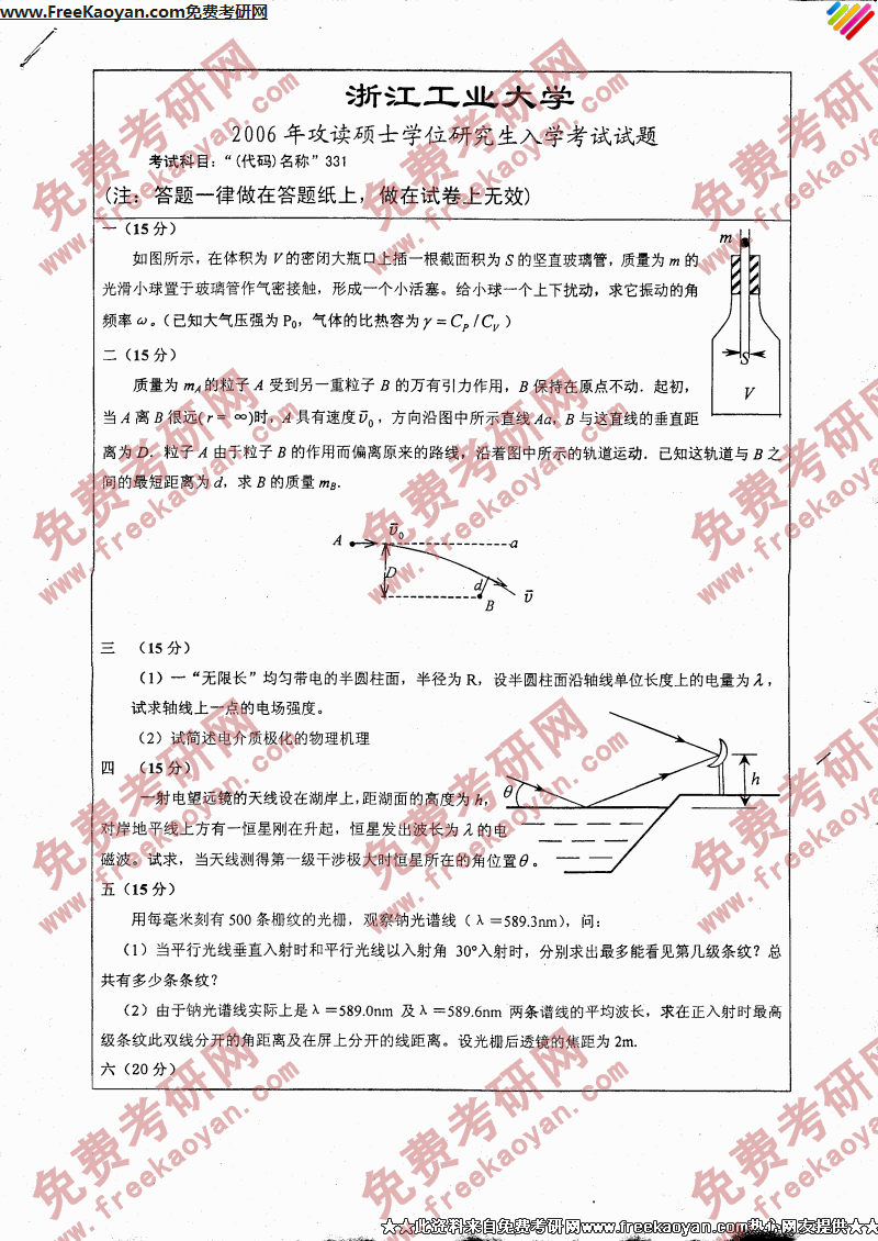 专业课考研经验 本站小编 FreeKaoyan 2018-01-23浙江工业大学2006年考研真题-电动力学