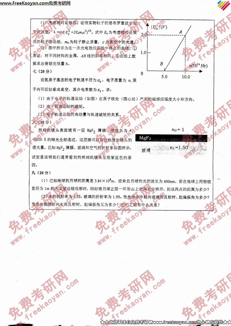 专业课考研经验 本站小编 FreeKaoyan 2018-01-23浙江工业大学2006年考研真题-电动力学