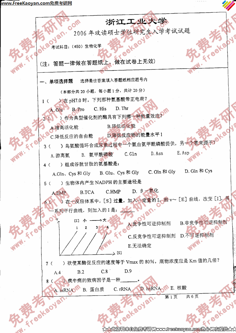 专业课考研经验 本站小编 FreeKaoyan 2018-01-23浙江工业大学2006年考研真题-环境化学