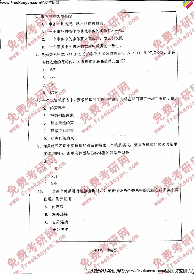 浙江工业大学2006年考研真题-数据库原理(3)