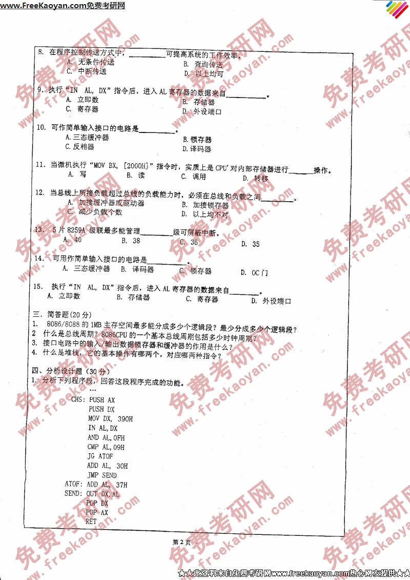 浙江工业大学2006年考研真题-微机原理及应用(2)
