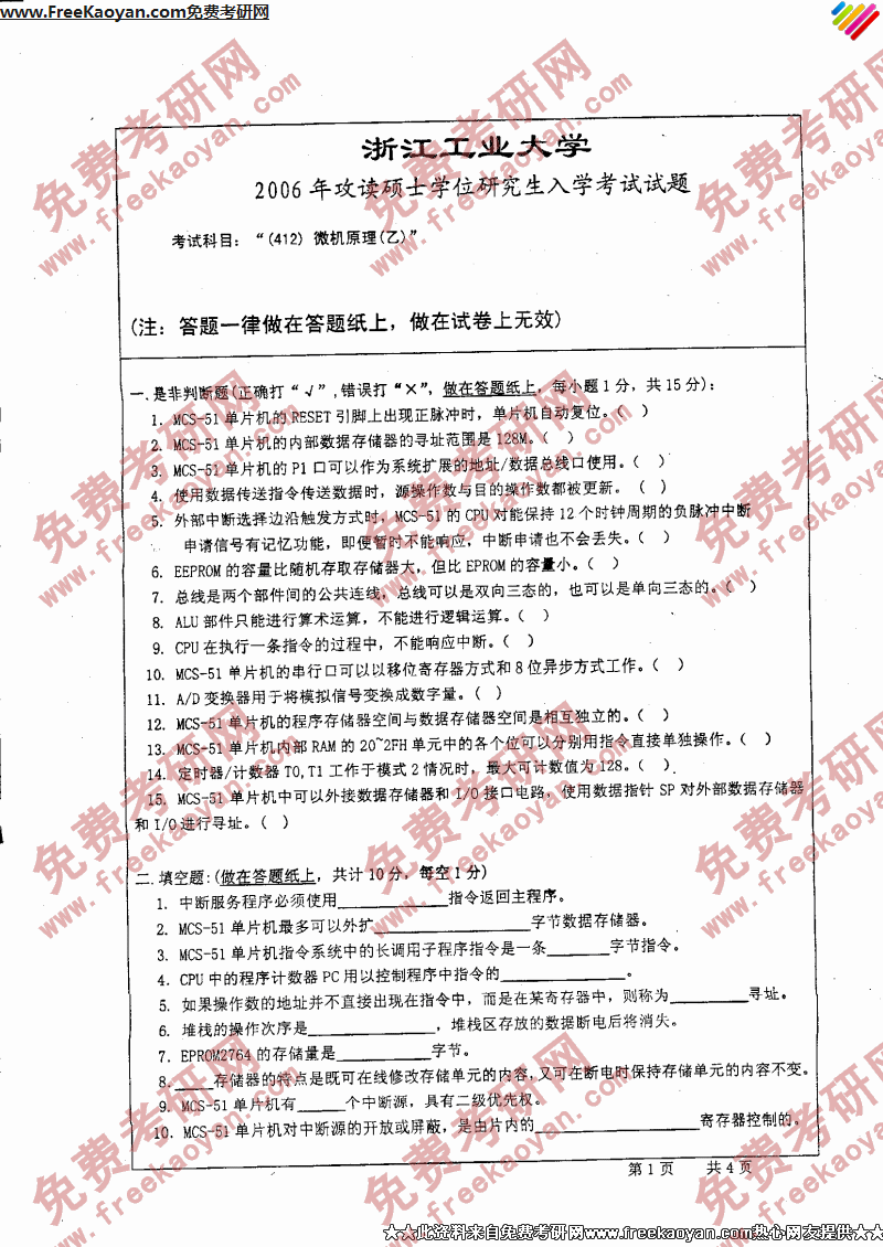 专业课考研经验 本站小编 FreeKaoyan 2018-01-23浙江工业大学2006年考研真题-离散数学与程序设计