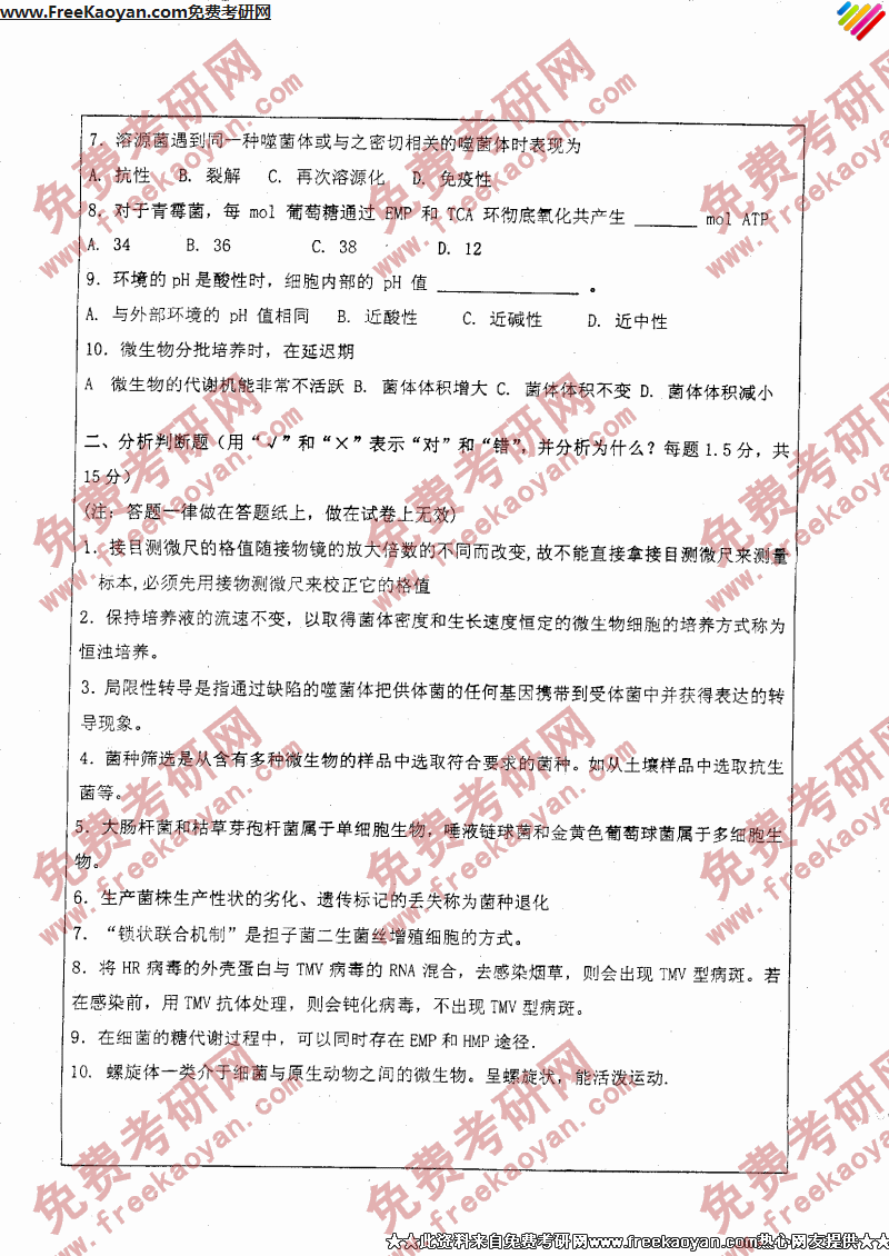 专业课考研经验 本站小编 FreeKaoyan 2018-01-23浙江工业大学2006年考研真题-生物化学