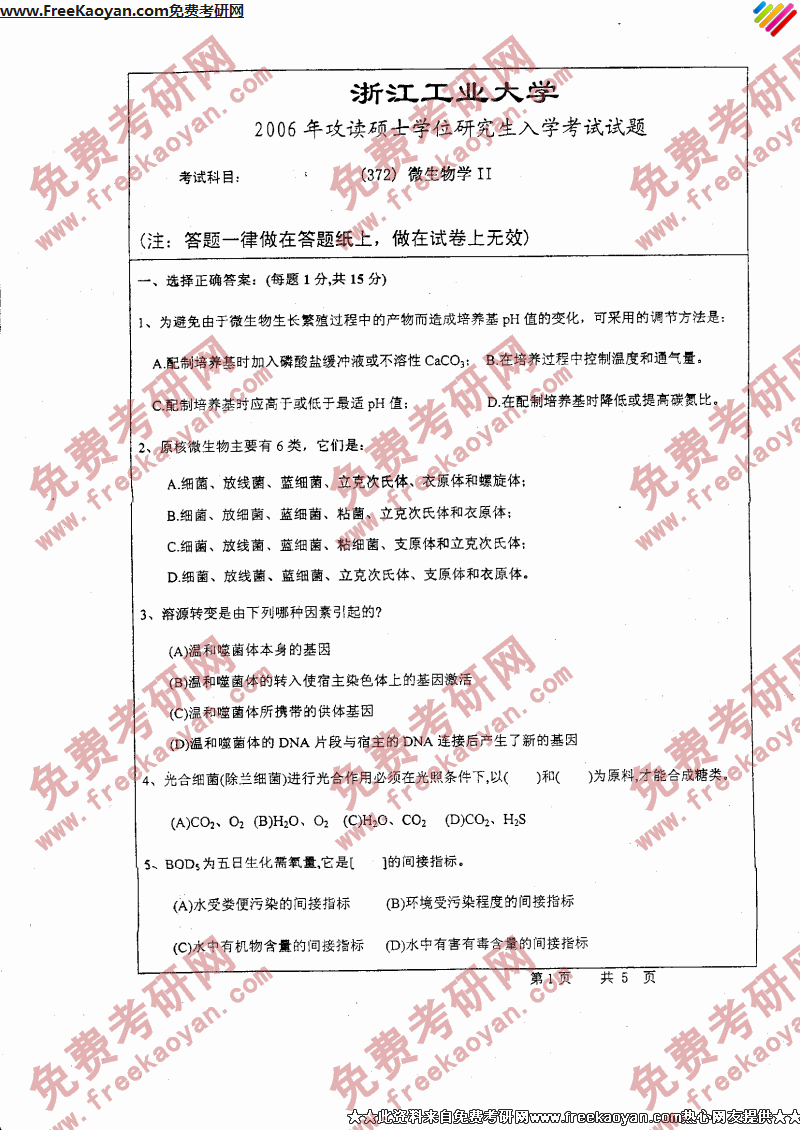 专业课考研经验 本站小编 FreeKaoyan 2018-01-23浙江工业大学2006年考研真题-环境化学
