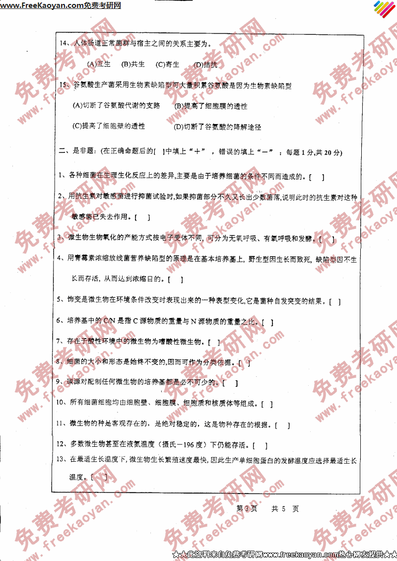 专业课考研经验 本站小编 FreeKaoyan 2018-01-23浙江工业大学2006年考研真题-生物化学