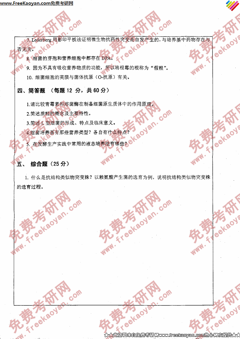 专业课考研经验 本站小编 FreeKaoyan 2018-01-23浙江工业大学2006年考研真题-微生物学II