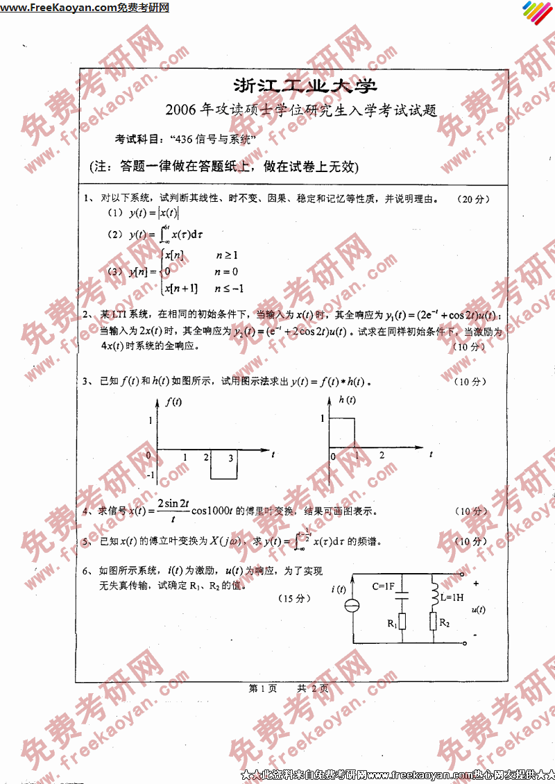 浙江工业大学2006年考研真题-信号与系统