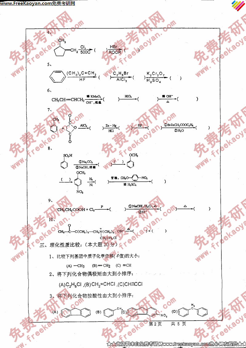 专业课考研经验 本站小编 FreeKaoyan 2018-01-23浙江工业大学2006年考研真题-物理化学