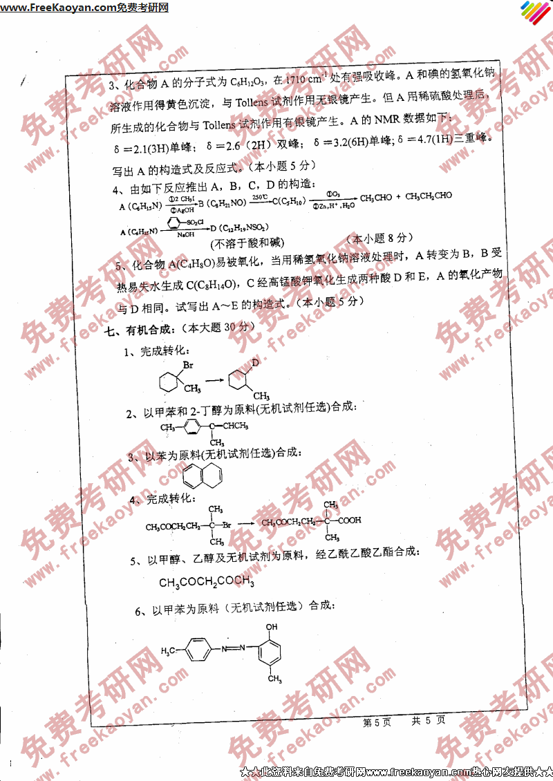 专业课考研经验 本站小编 FreeKaoyan 2018-01-23浙江工业大学2006年考研真题-药物化学