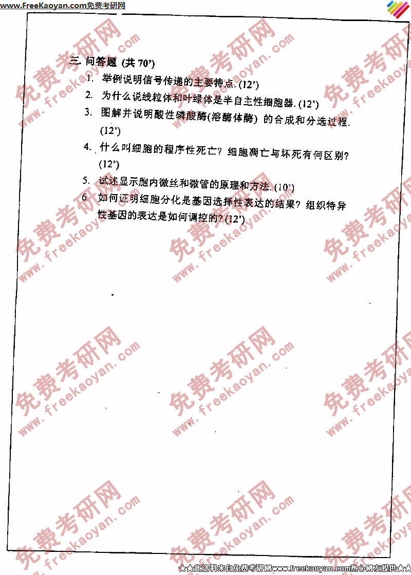 深圳大学2003年考研真题-细胞生物学(2)