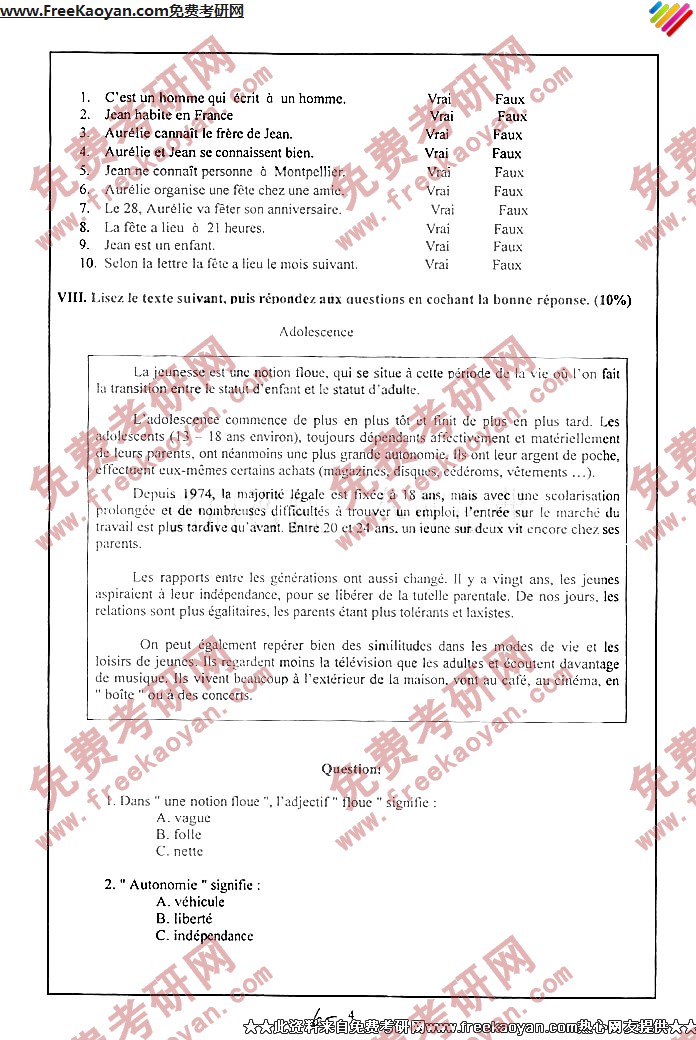• 厦门大学2003年考研真题-法语二外