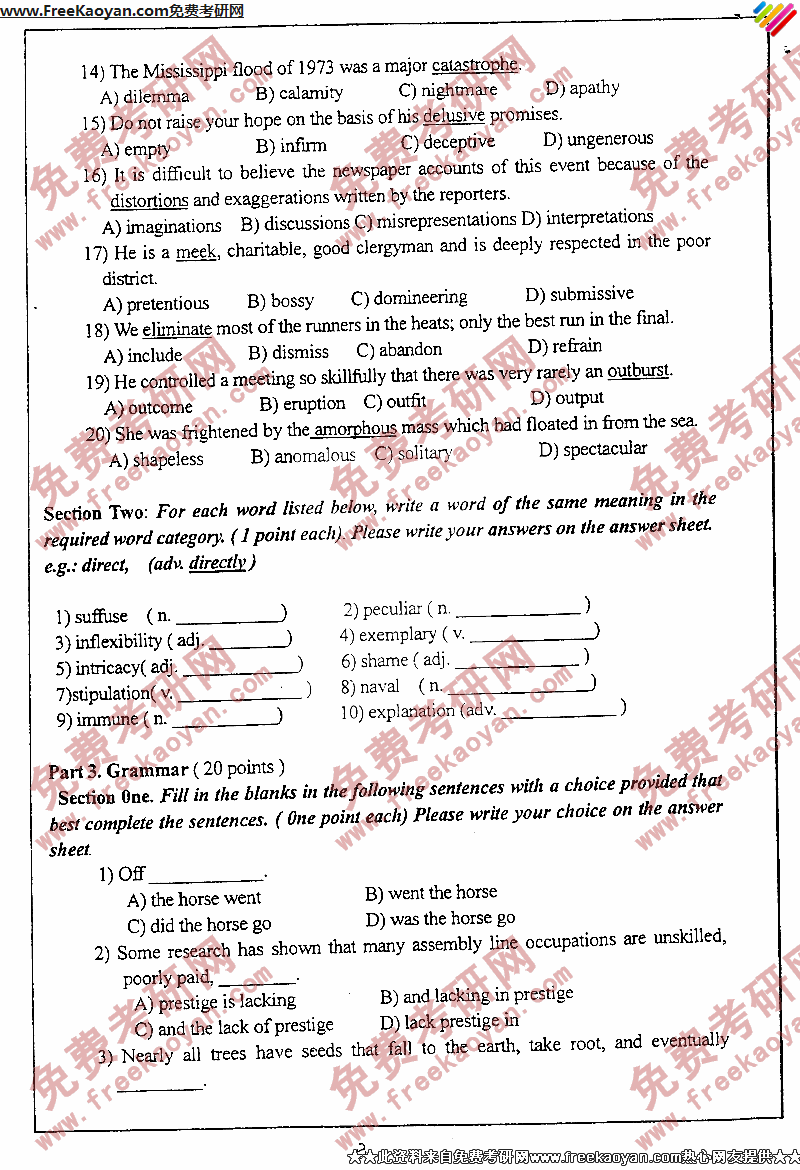 • 河南农业大学2003年考研真题-农业生物环境与能源工程复试
