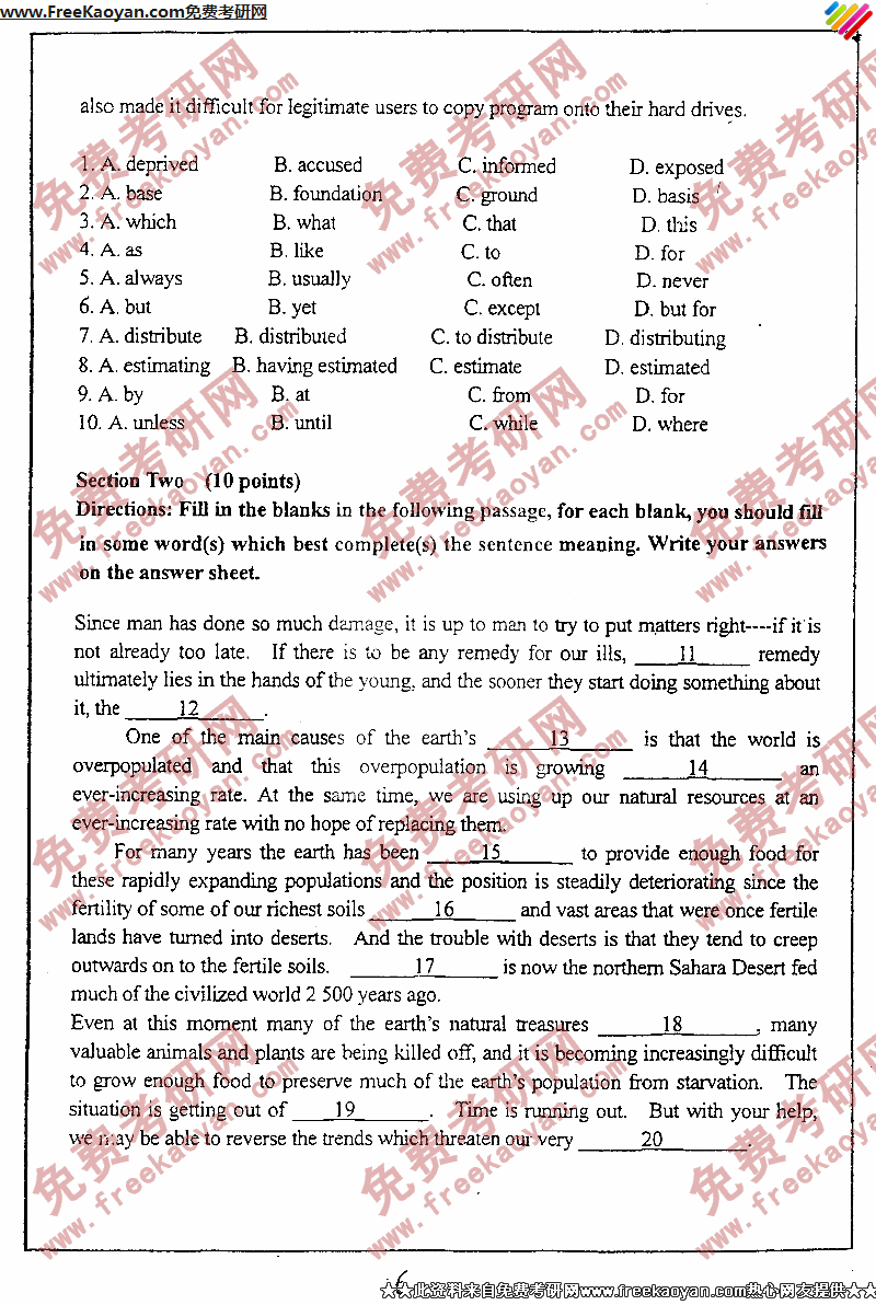1、在加入WTO形势下,针对河南省农业资源数量与质量、应用与保护中存在的问题,请站在专业高度,综合运用所学专业知识提出今后解决这些问题的指导思想、工作思路、发展途径以及所应采取的措施和办法。(70分)2、在四年大学生活中,你从知识、能力和素质上都有哪些收获和提高?毕业实习中,你做过哪些研究工作,毕业 ...