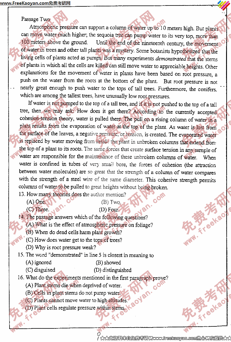 • 河南农业大学2003年考研真题-农业生物环境与能源工程复试