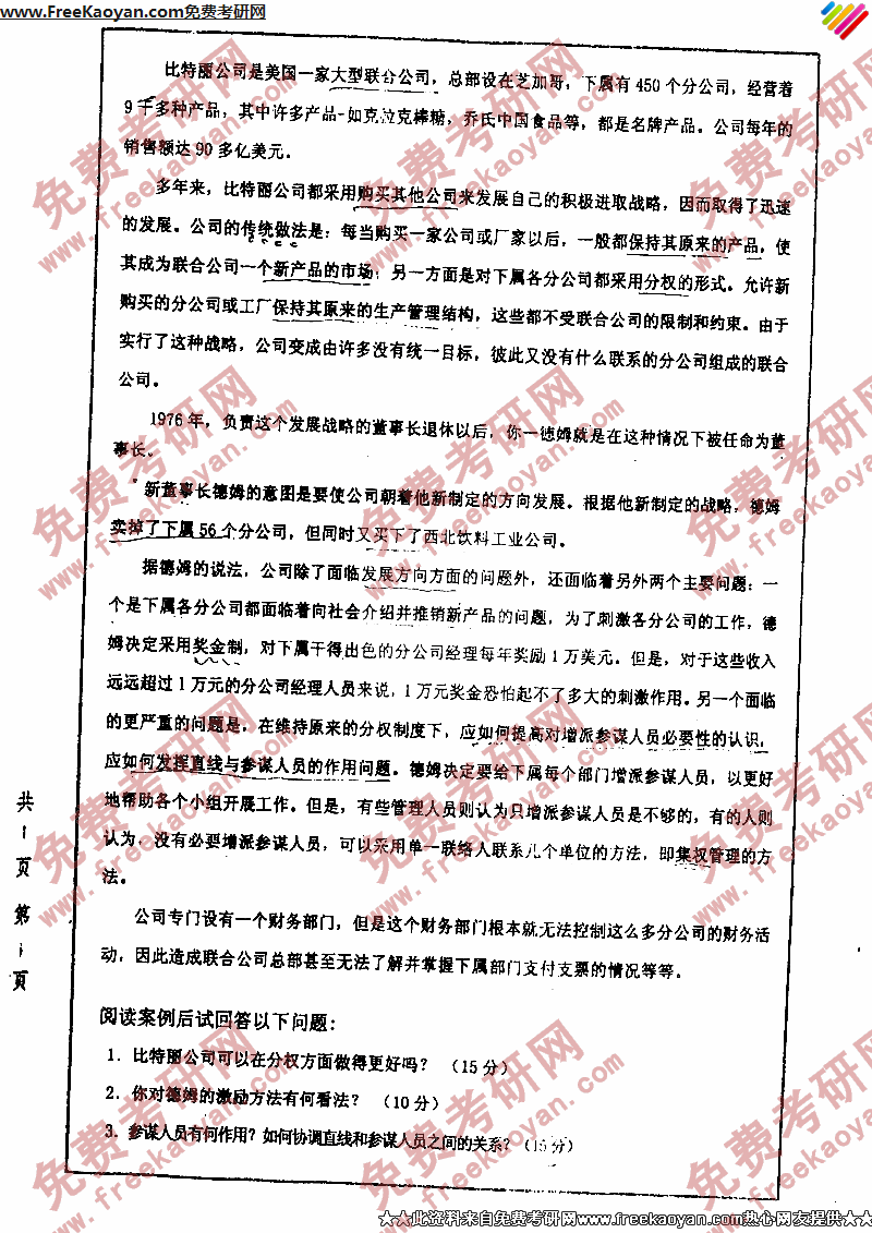 专业课考研经验 本站小编 FreeKaoyan 2018-01-231、 试论农业企业生产经营风险的防范。(50分)2、 试论农业与工业的相互依存关系。(10分)3、 试论家庭承包经营体制的完善与发展。(40分) ...