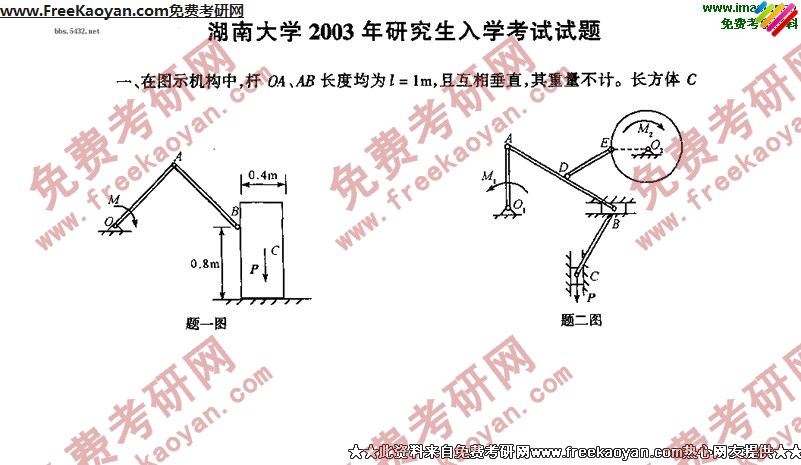 湖南大学2003年考研真题-应用物理系力学