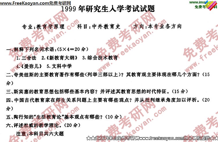 专业课考研经验 本站小编 FreeKaoyan 2018-01-23华中师范大学1998年考研真题-外国教育史(中国教育史专业)