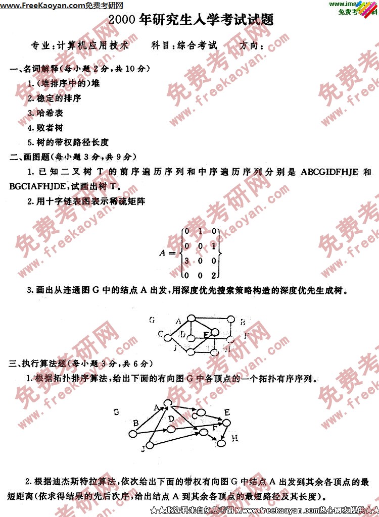 华中师范大学2000年考研真题-计算机科学系综合考试