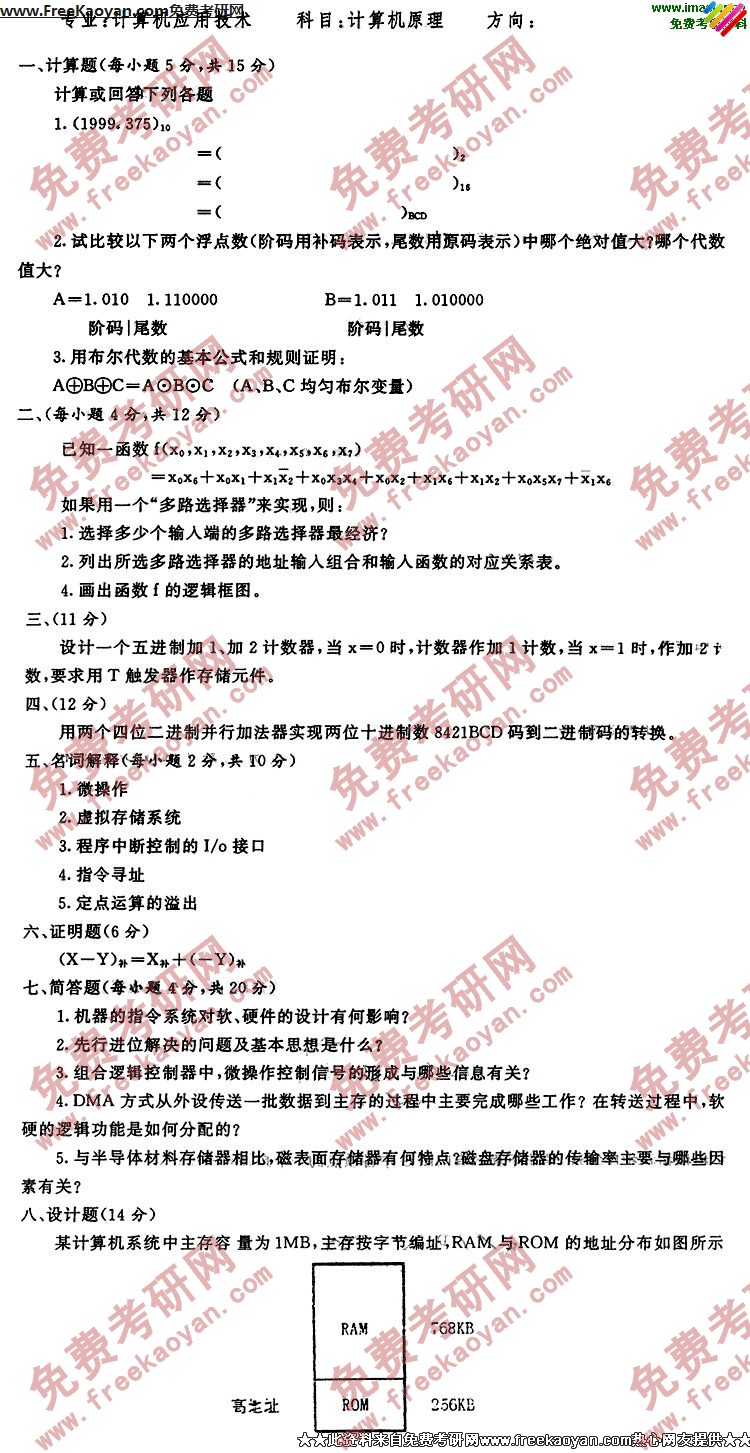 专业课考研经验 本站小编 FreeKaoyan 2018-01-23华中师范大学1999年考研真题-计算机原理