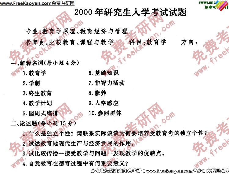 专业课考研经验 本站小编 FreeKaoyan 2018-01-23华中师范大学2000年考研真题-教育经济学