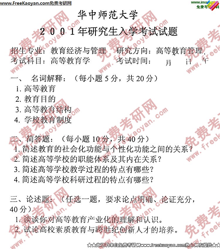 专业课考研经验 本站小编 FreeKaoyan 2018-01-23华中师范大学2000年考研真题-教育管理学