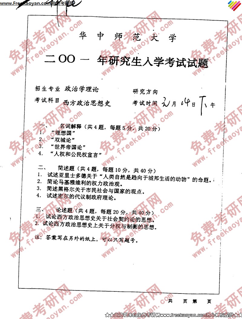 相关话题/华中师范大学 考研真题 西方政治思想史