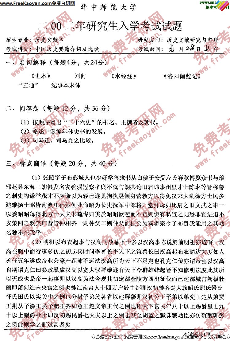 相关话题/考研真题 华中师范大学 介绍 历史文献学 选读