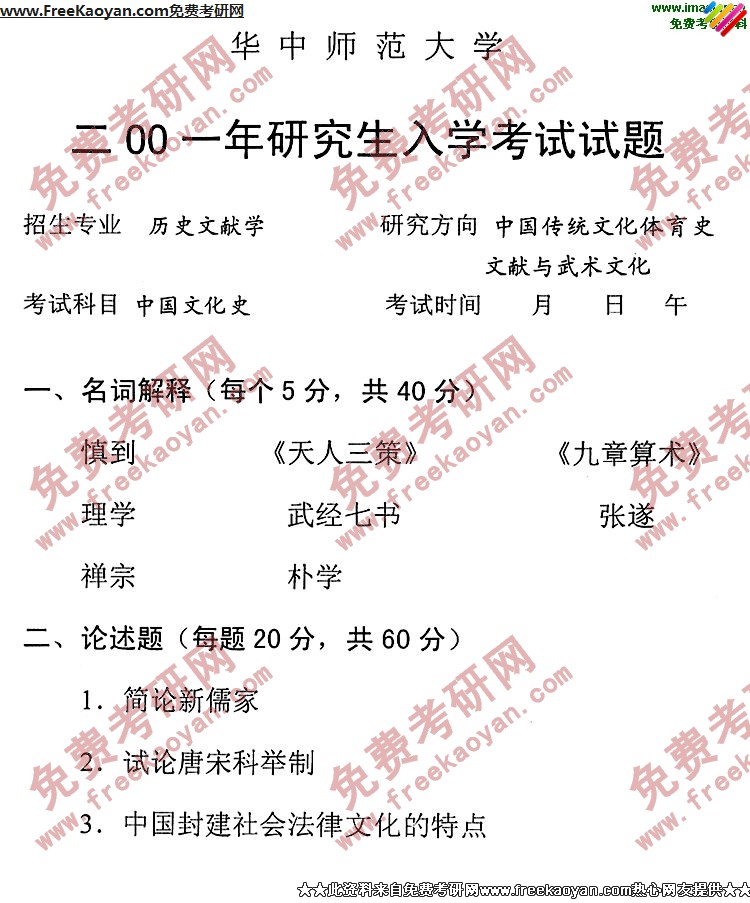 专业课考研经验 本站小编 FreeKaoyan 2018-01-23华中师范大学2001年考研真题-中国古代汉语